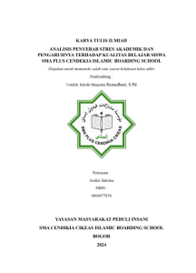 ANALISIS PENYEBAB STRES AKADEMIK DAN PENGARUHNYA TERHADAP KUALITAS BELAJAR SISWA SMA PLUS CENDEKIA ISLAMIC BOARDING...