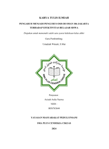 PENGARUH MENJADI PENGURUS OSIS DI SMAN 106 JAKARTA TERHADAP EFEKTIVITAS BELAJAR SISWA