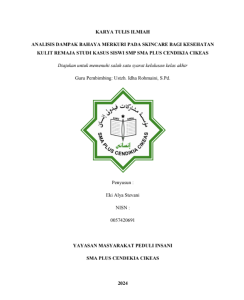 ANALISIS DAMPAK BAHAYA MERKURI PADA SKINCARE BAGI KESEHATAN KULIT REMAJA STUDI KASUS SISWI SMP SMA...